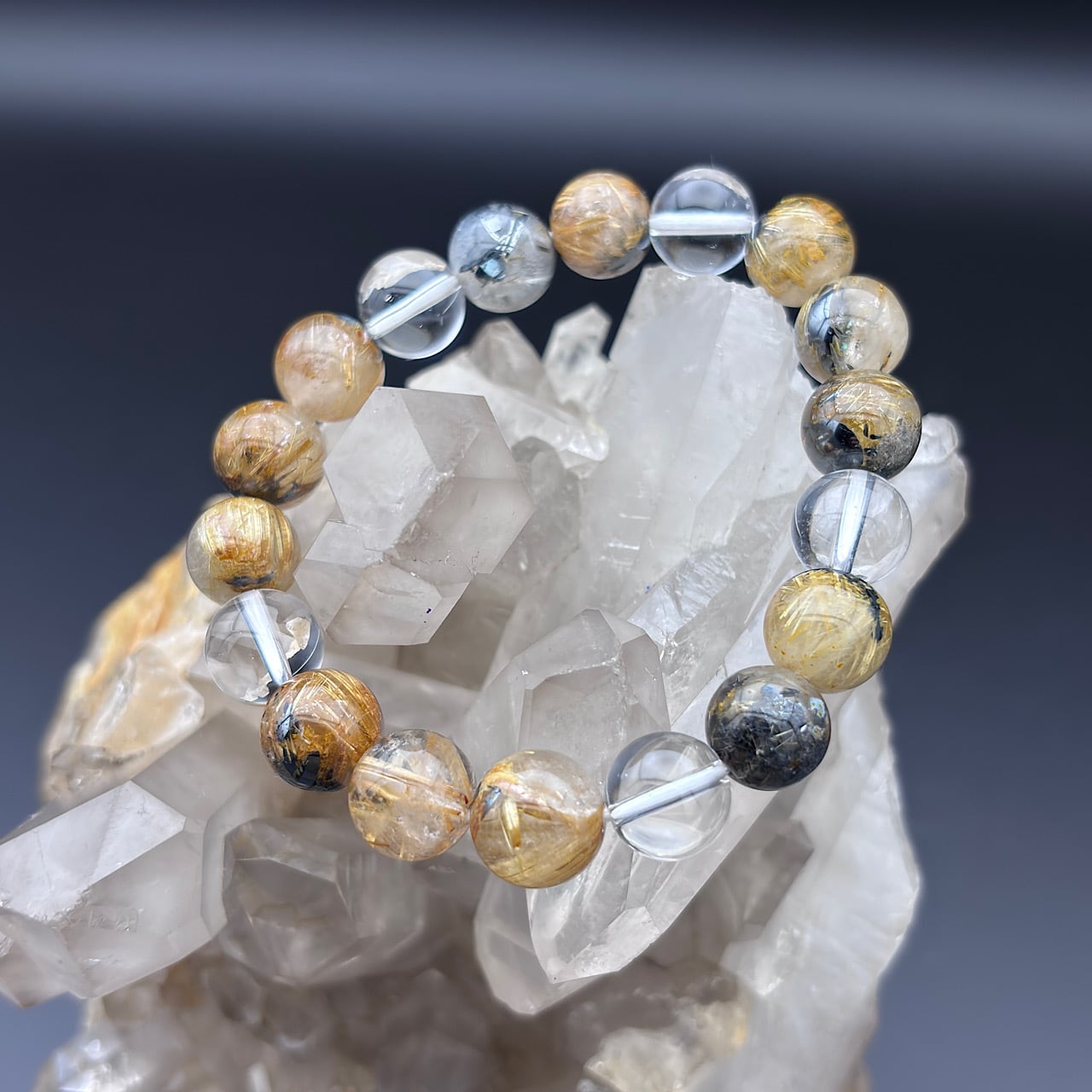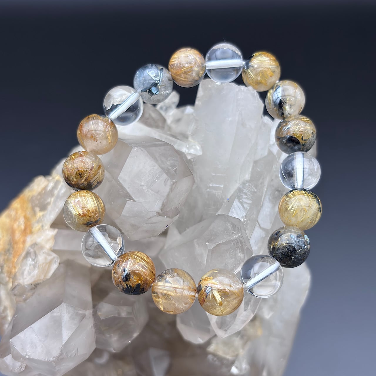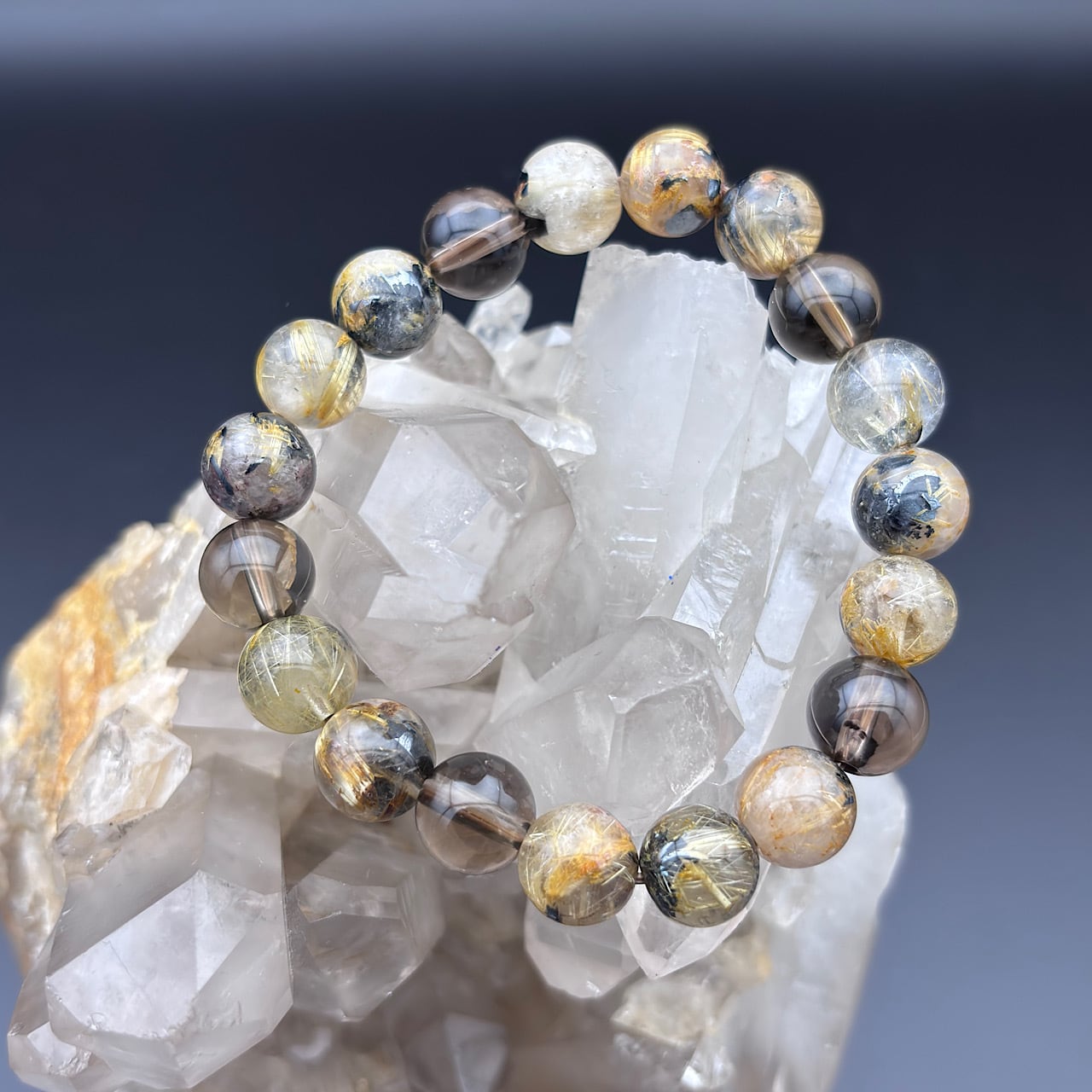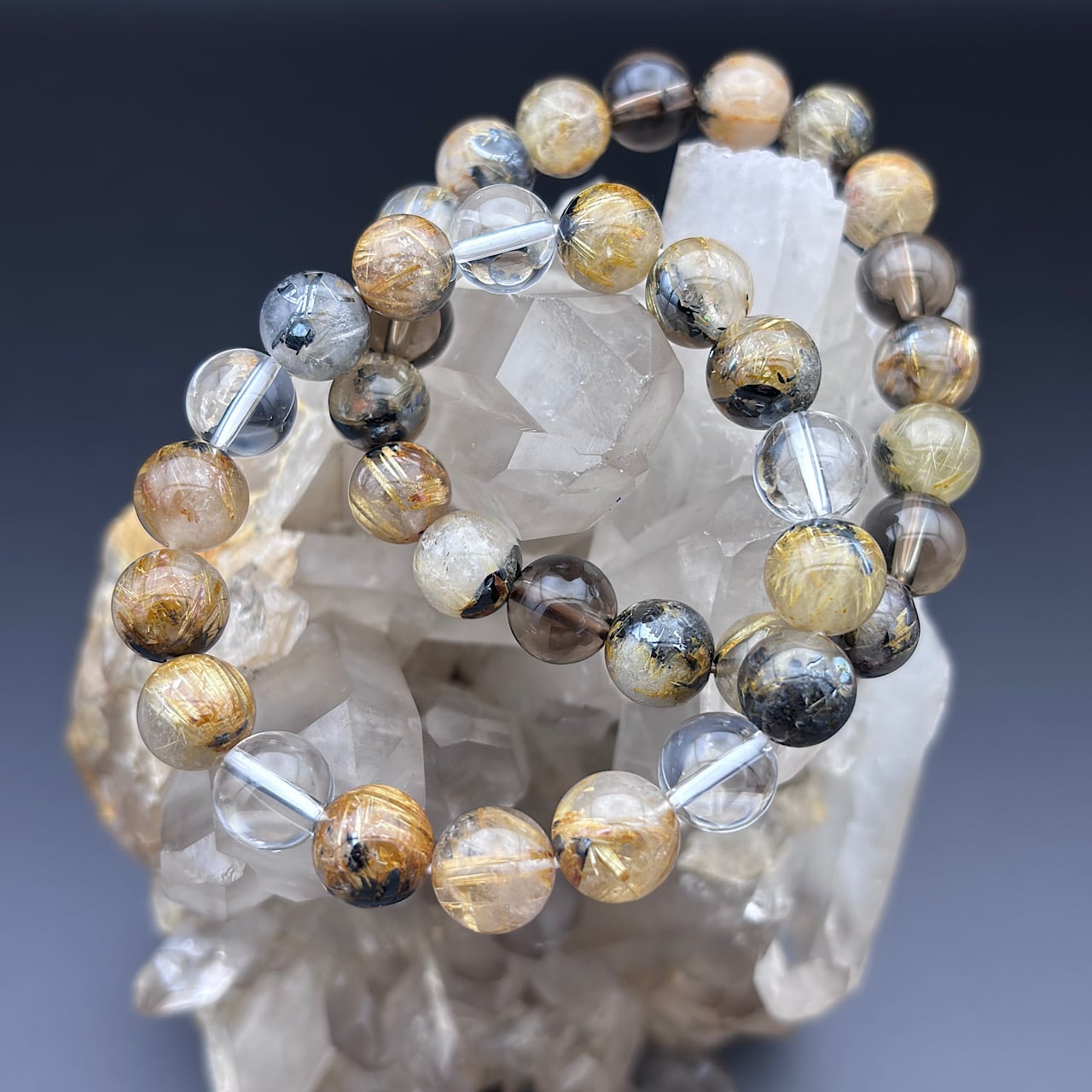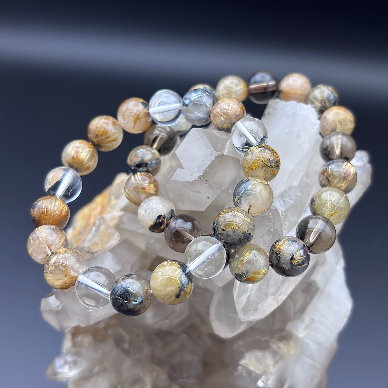 雷神ゴールドルチル約10mm&スモーキークォーツ約10mm &水晶約10mm