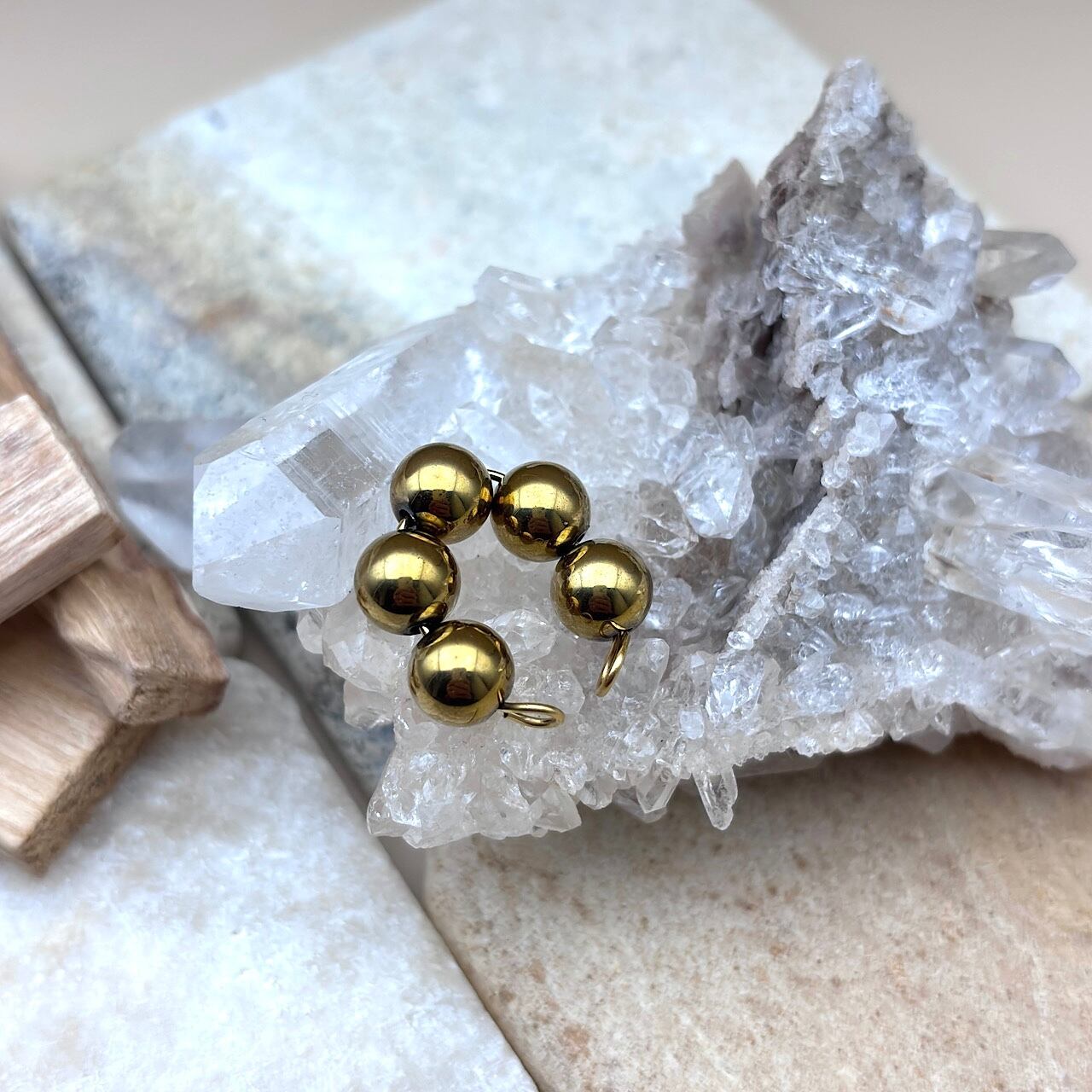 ヘマタイトは、心のクリアリングやストレスの緩和に寄与し、自信を与えてくれる存在です。このイヤーカフを装着することで、日常の活動がスムーズになり、集中力を高めることが期待できます。