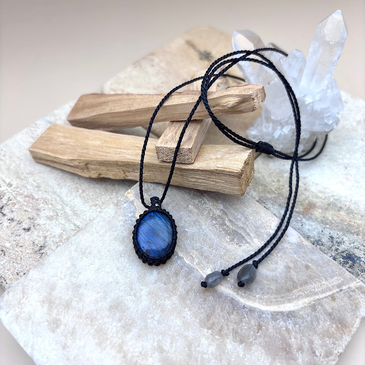 心の成長とエネルギーをもたらすこのラブラドライトマクラメネックレスをぜひお楽しみください!!