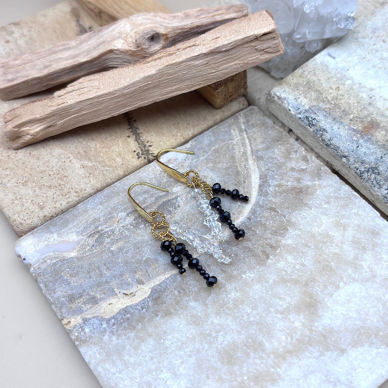上がるピアス☆ハーキマーダイヤモンド×ブラックスピネルピアス☆