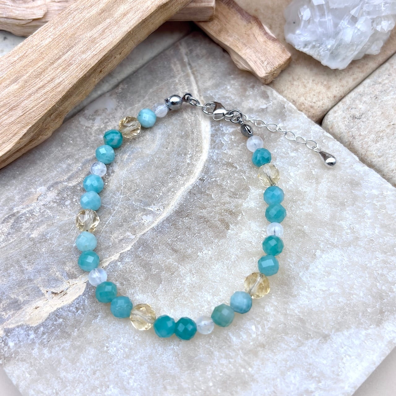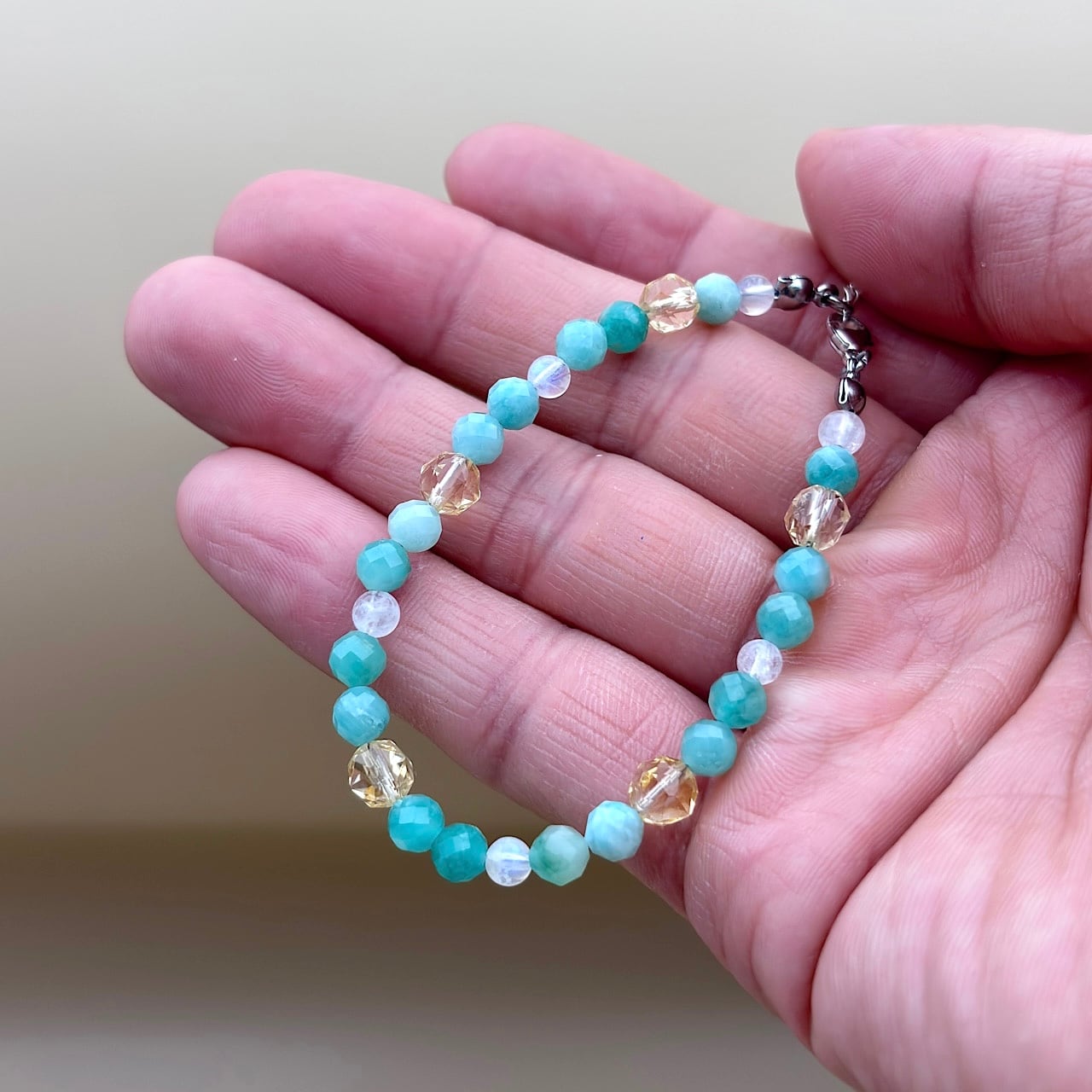 エメラルドは愛と繁栄を象徴し、シトリンは自信と意欲を高める力があるとされます。また、ムーンストーンは感情のバランスを整え、直感力を引き出すとも言われています。この3つの石のハーモニーが、心を穏やかにし、ポジティブなエネルギーに満ちた日々をサポートしてくれるでしょう☆