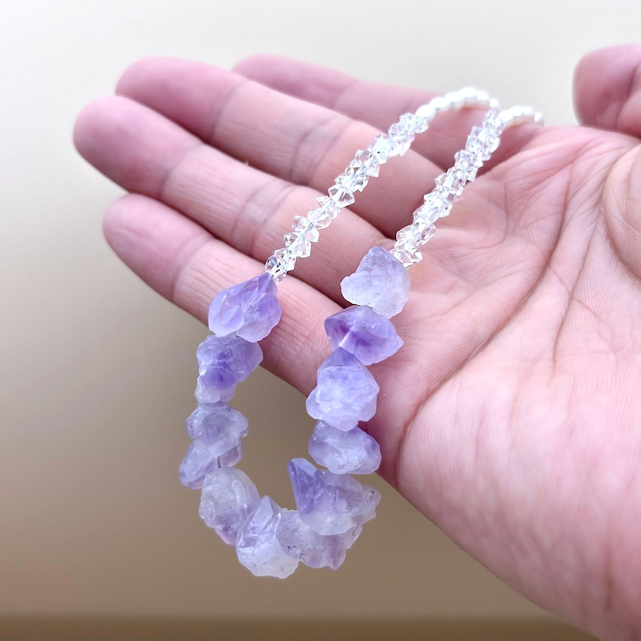 このアメジストハーキマーネックレスは、深い安心感を与え、心の平穏を保つお守りとしても役立ちます。自分自身へのご褒美や、特別な方への贈り物にもぴったりのアイテムです☆