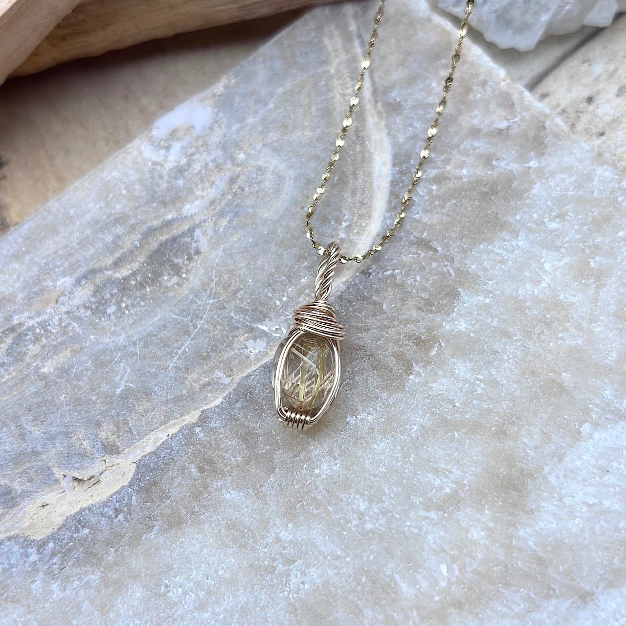 洗練された美しさが魅力的な一品です!ゴールドルチルの神秘的な煌めきが、あなたの首元を優雅に彩ります☆