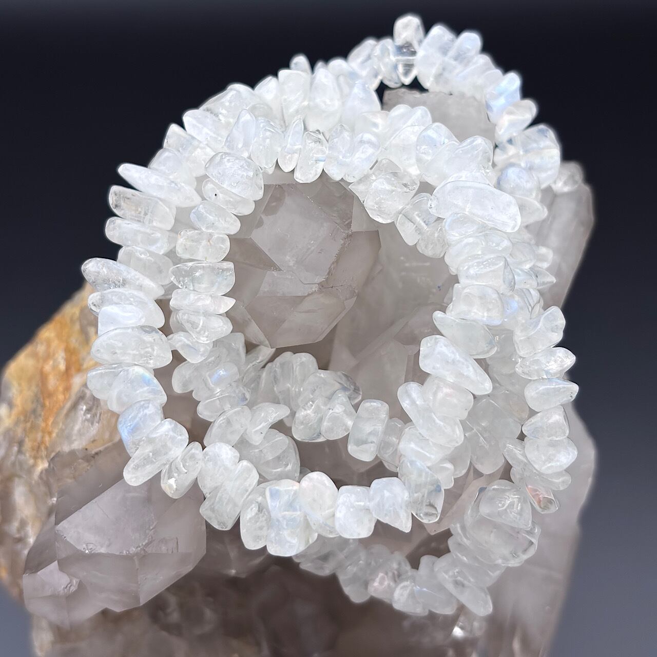 この美しいレインボームーンストーン細石ブレスレットが、あなたの日常に特別な輝きを添え、幸運を呼び込むお手伝いをしますように☆