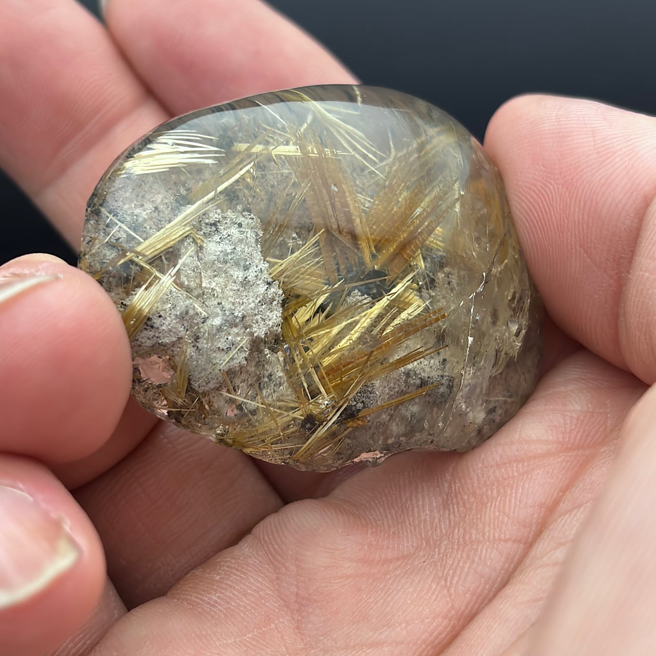このゴールドタイチンルチルは、Reがバリで厳選した素晴らしいゴールドタイチンルチルです。手に取り、「これすごいよ」の一言。