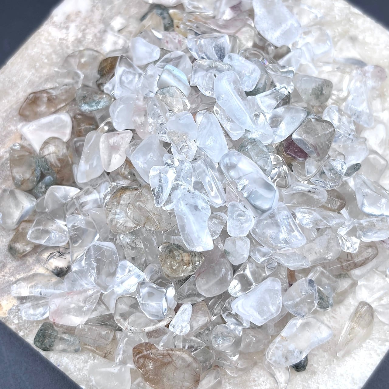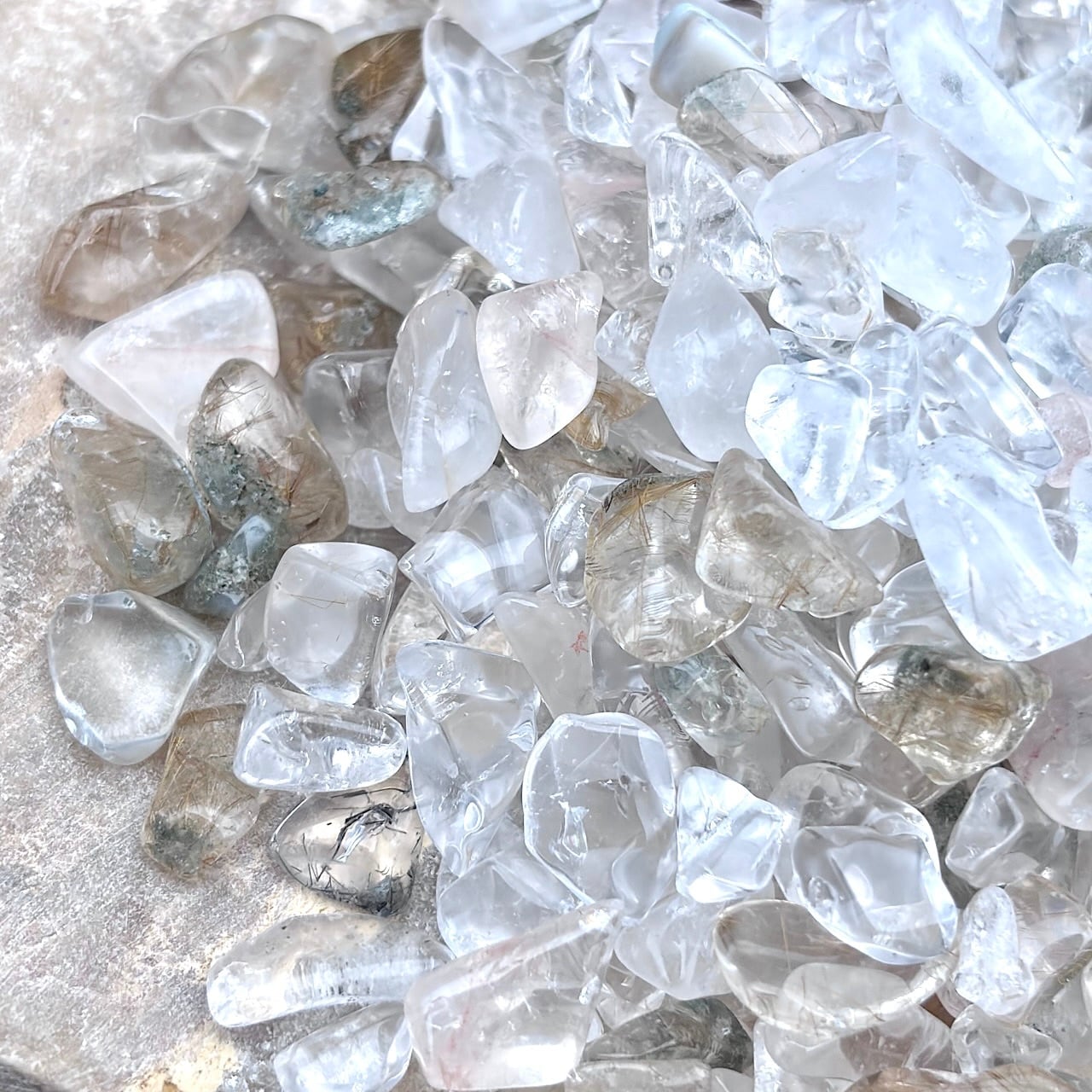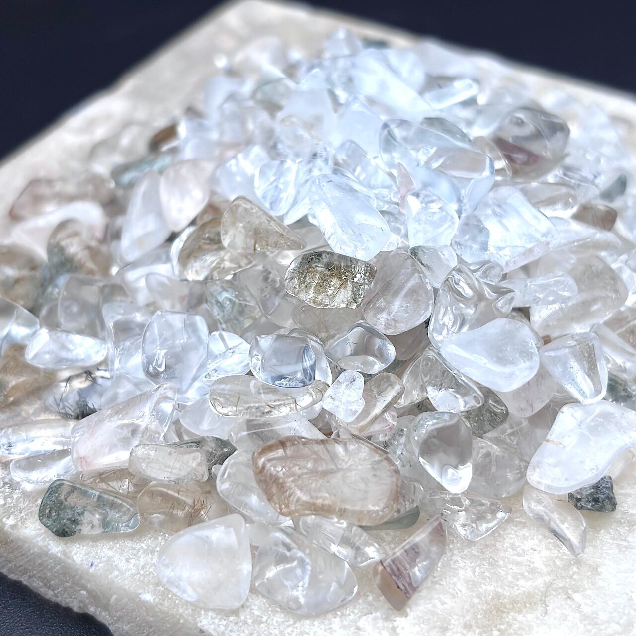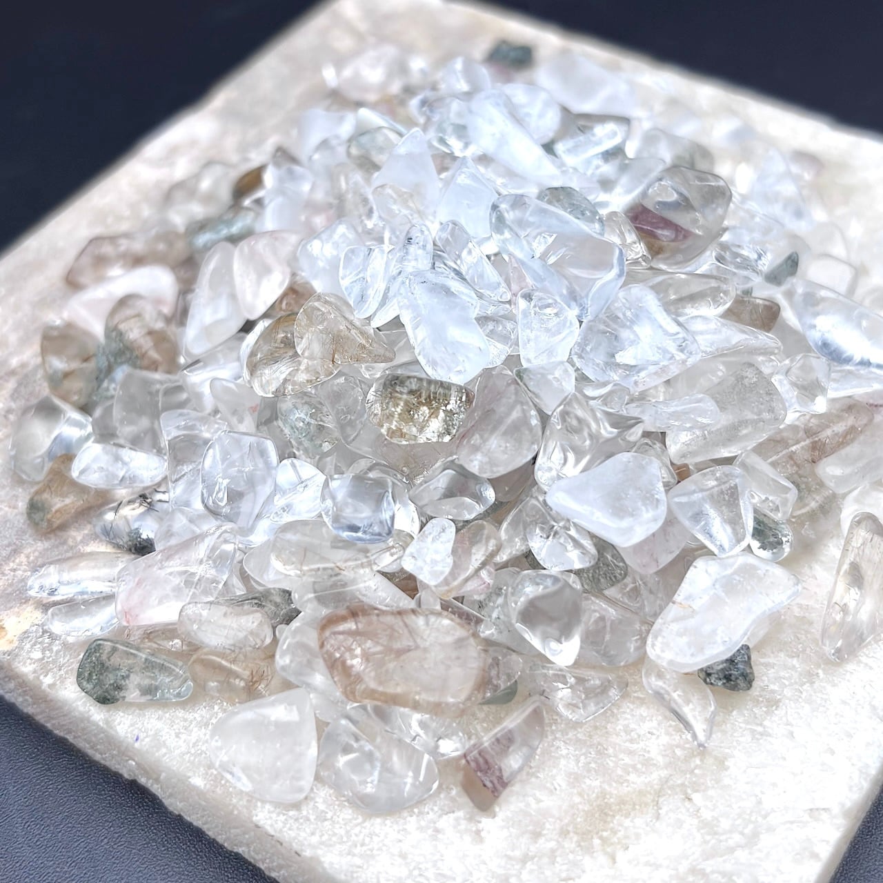 疲れた天然石をしっかり浄化!☆マニハール産透明ゴールドルチルクォーツさざれ石•海水100%塩付き☆