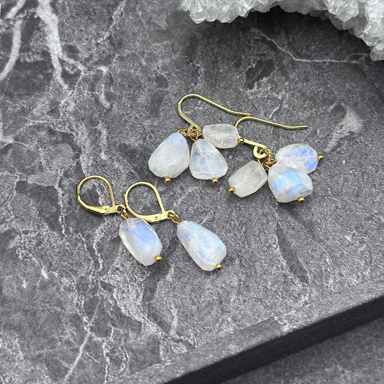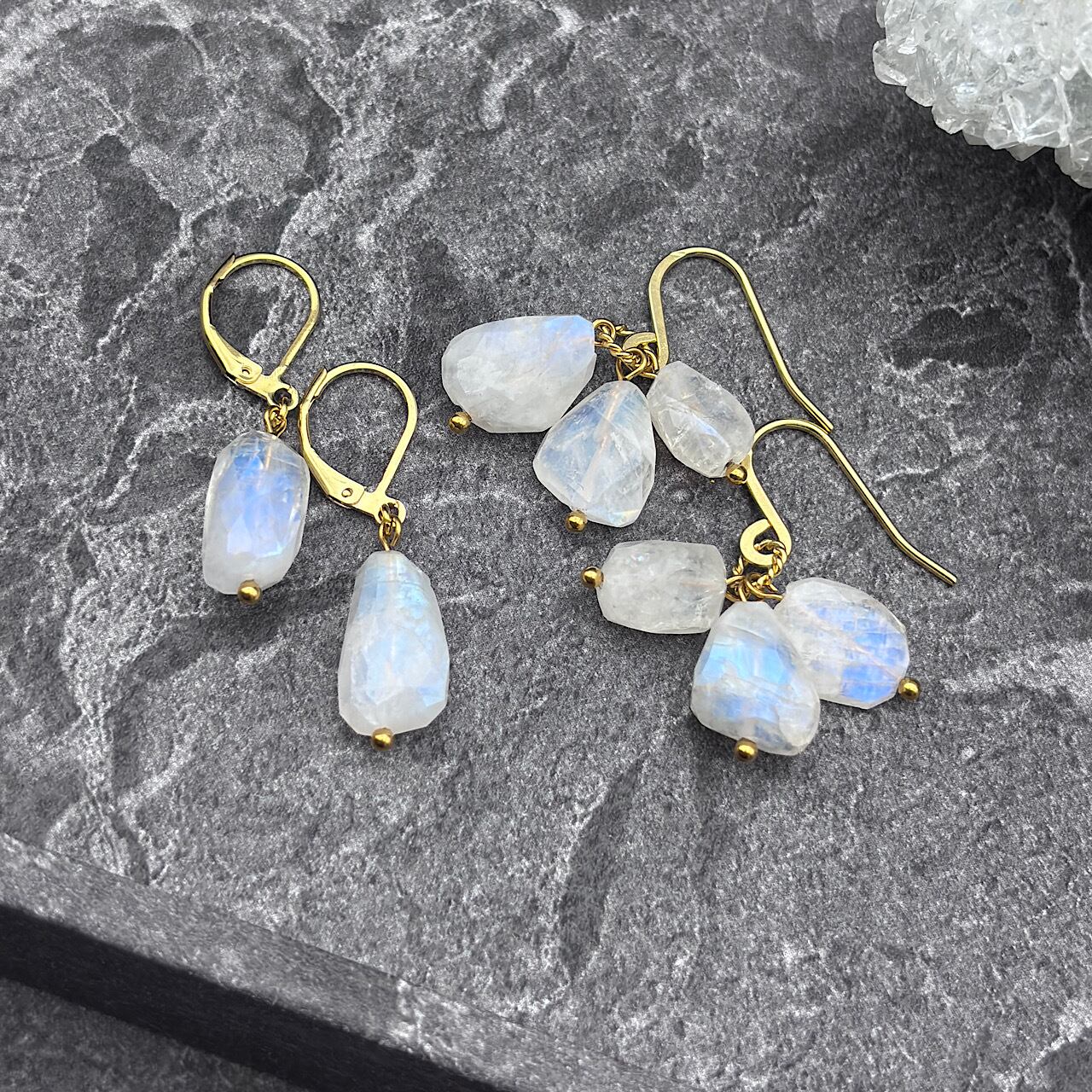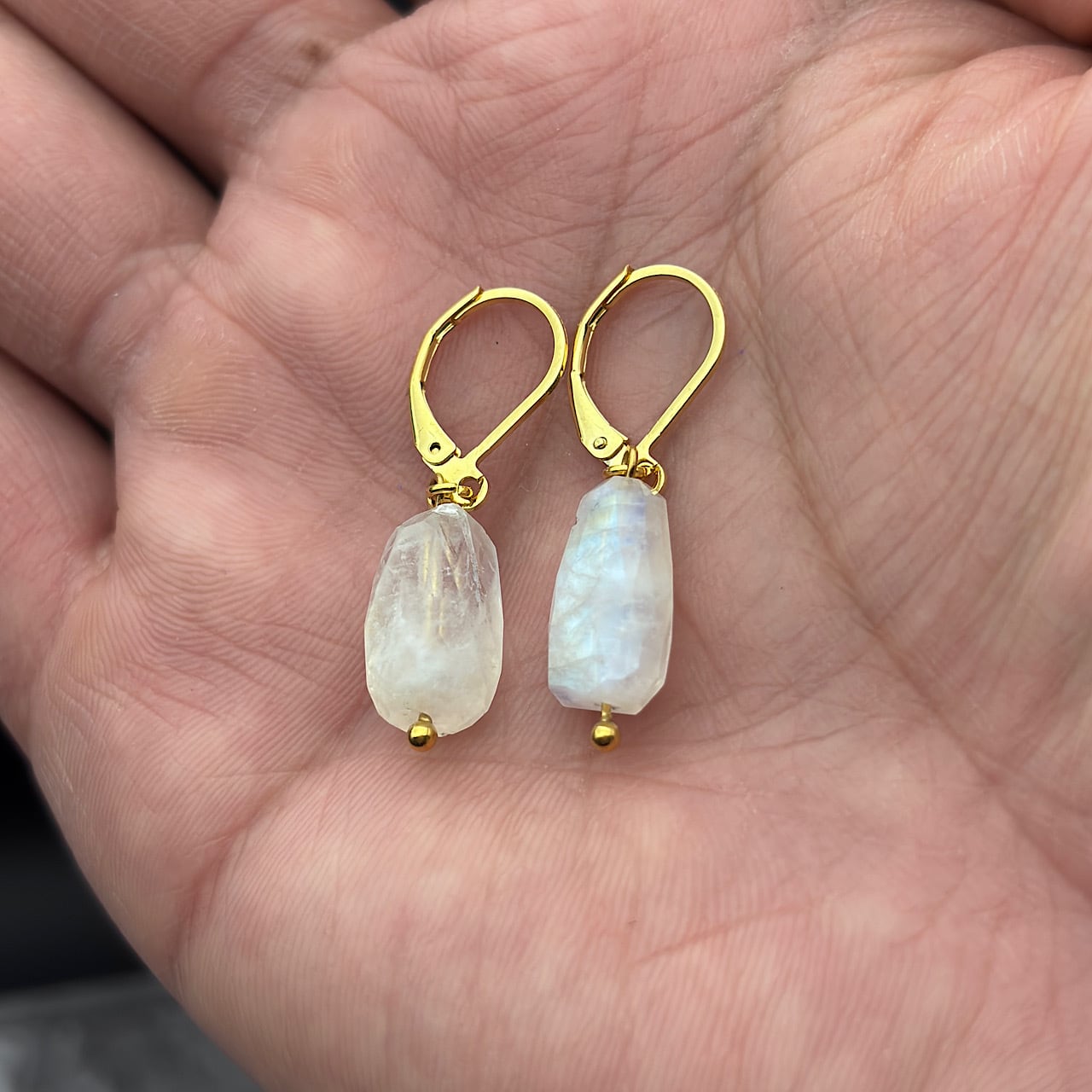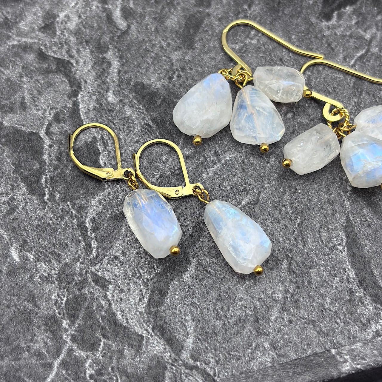 このピアスは、輝くレインボームーンストーンを使用しており、あなたのスタイルに神秘的な魅力をプラスします!