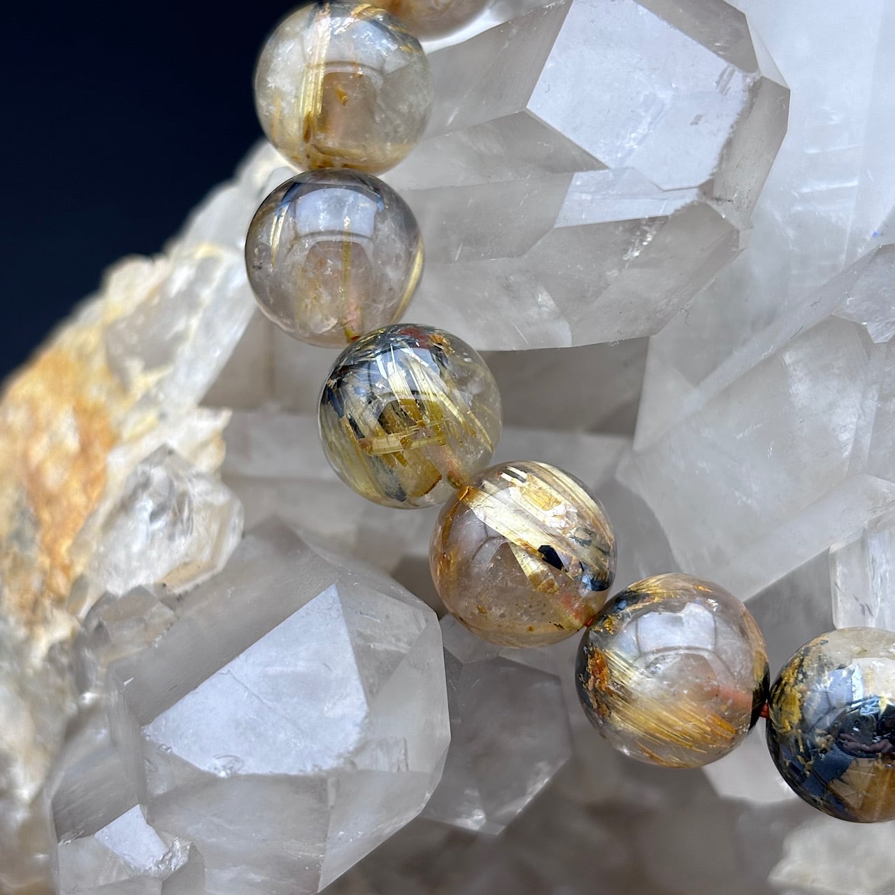 このブレスレットは、雷神ゴールドルチルクォーツを使用しており、あなたのスタイルに力強いエネルギーをプラスします!