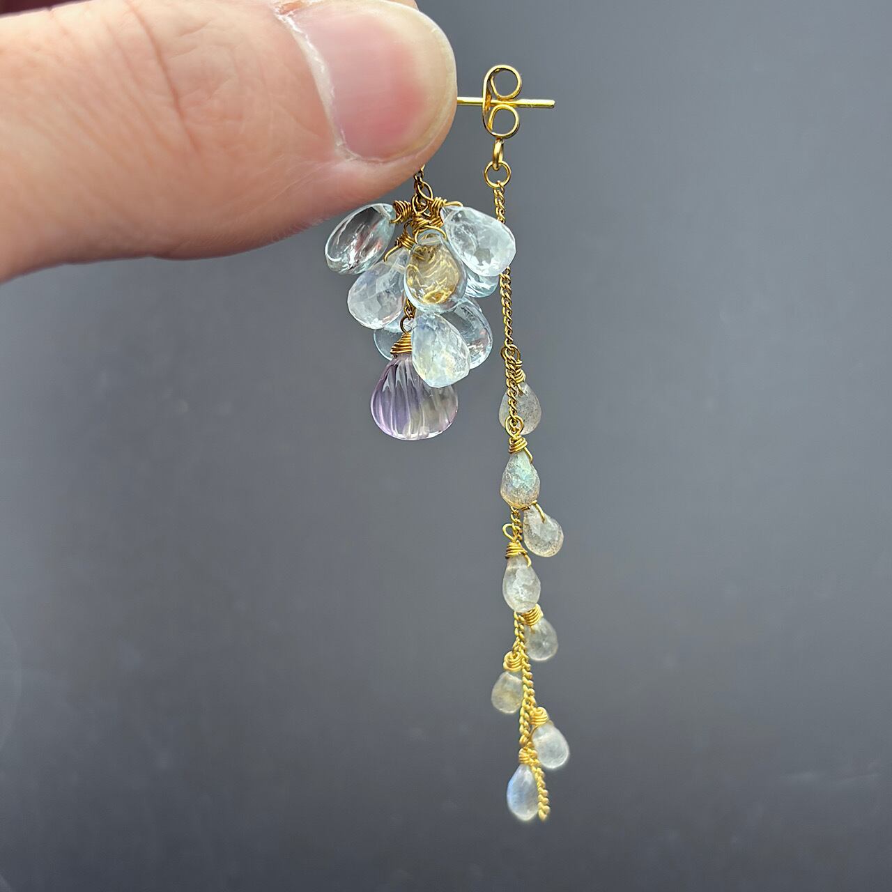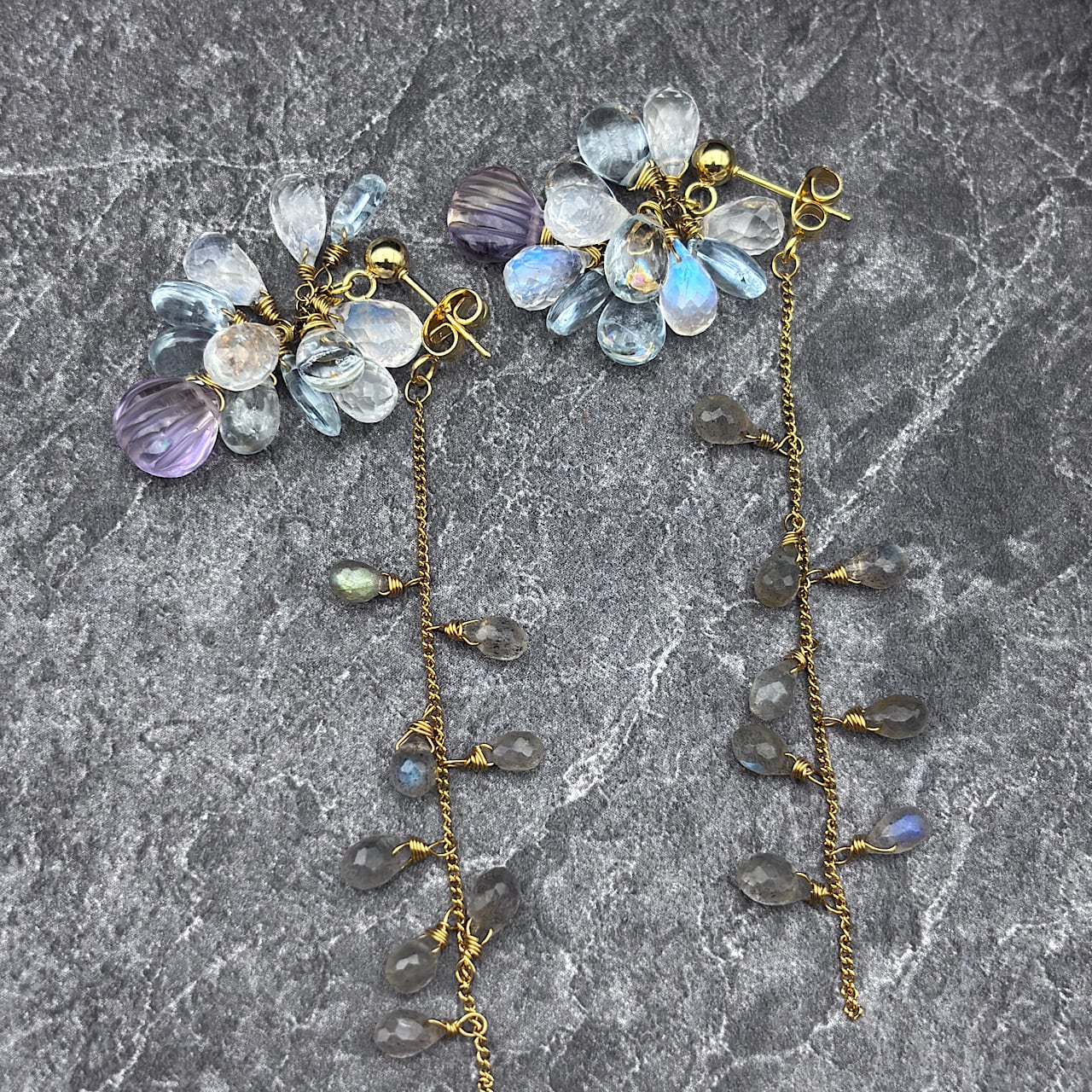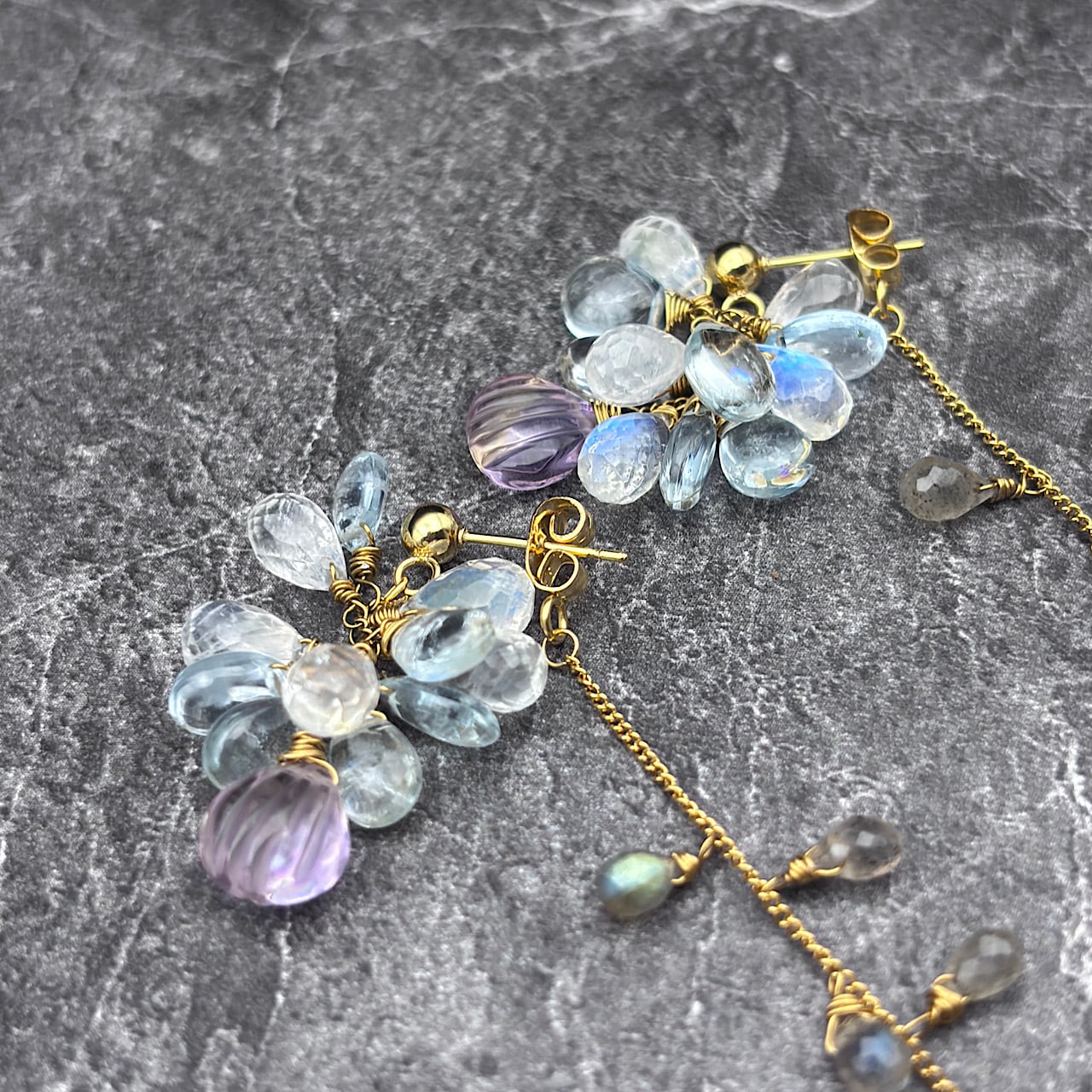Reが特別に選んだ、神秘的なアメトリンと優しいアクアマリン、魅力的なブルームーンストーン、そしてラブラドライトを組み合わせたピアスが新たに登場しました!