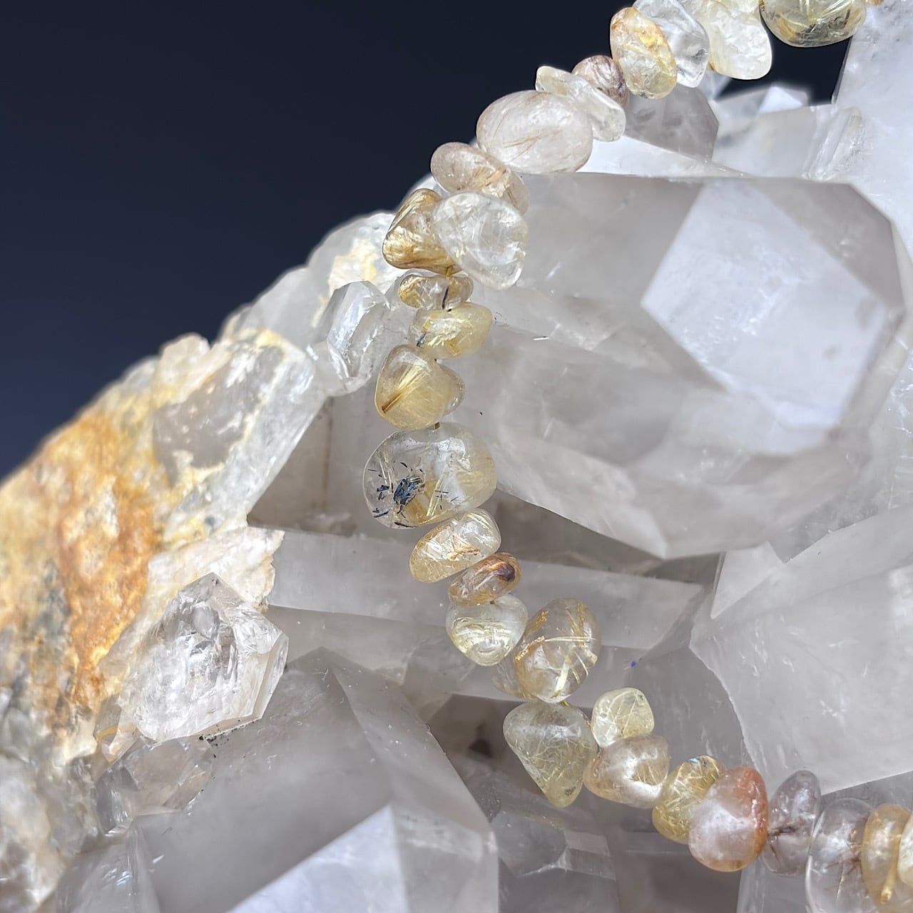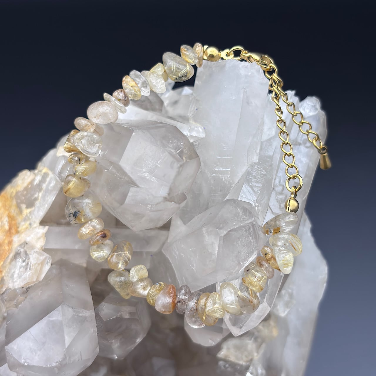 ゴールドルチルは、その美しい金色の針状結晶が特徴で、持つ人に特別なエネルギーを与えると言われています。このブレスレットは、スタイリッシュなデザインと相まって、あなたの個性を引き立てるアイテムとして活躍します☆