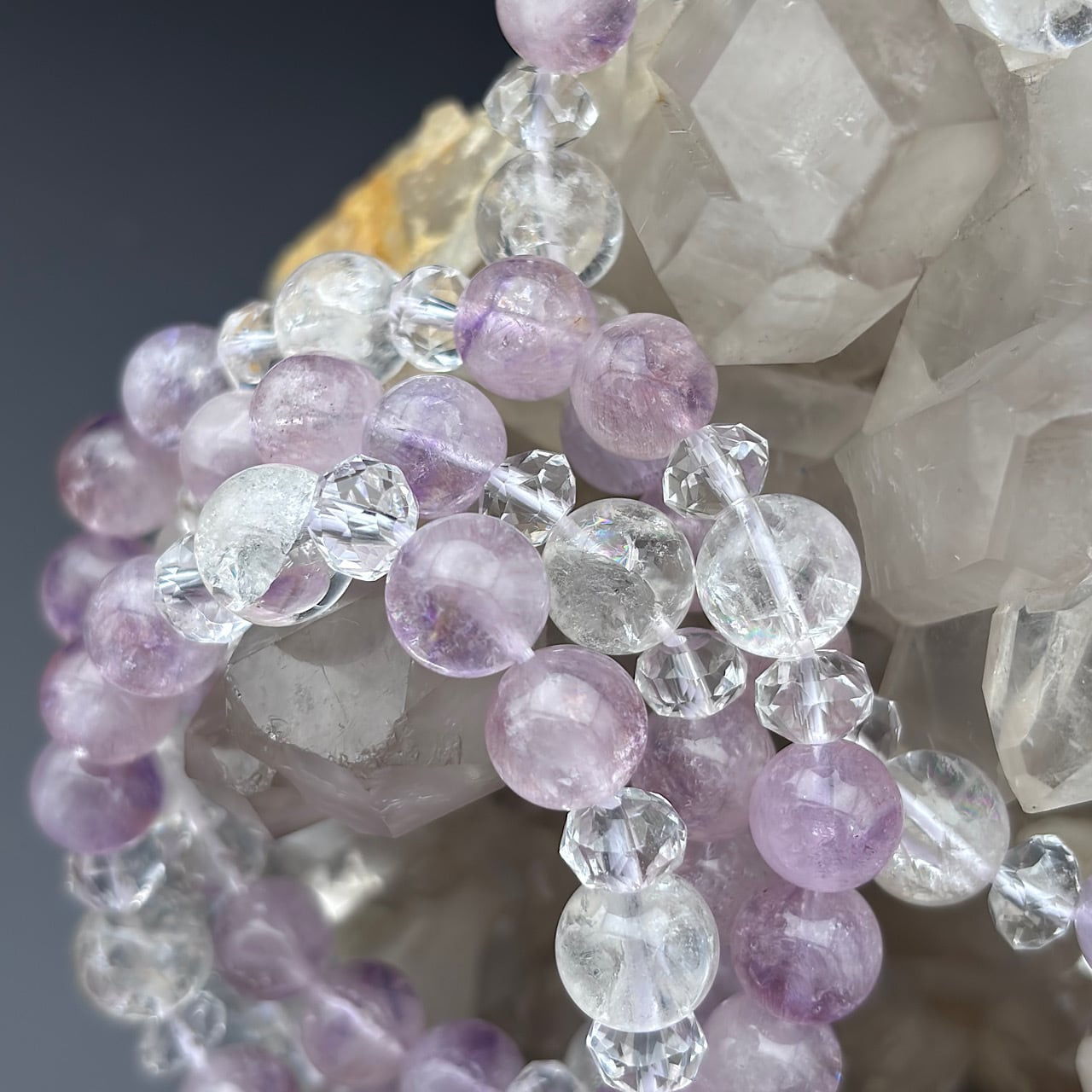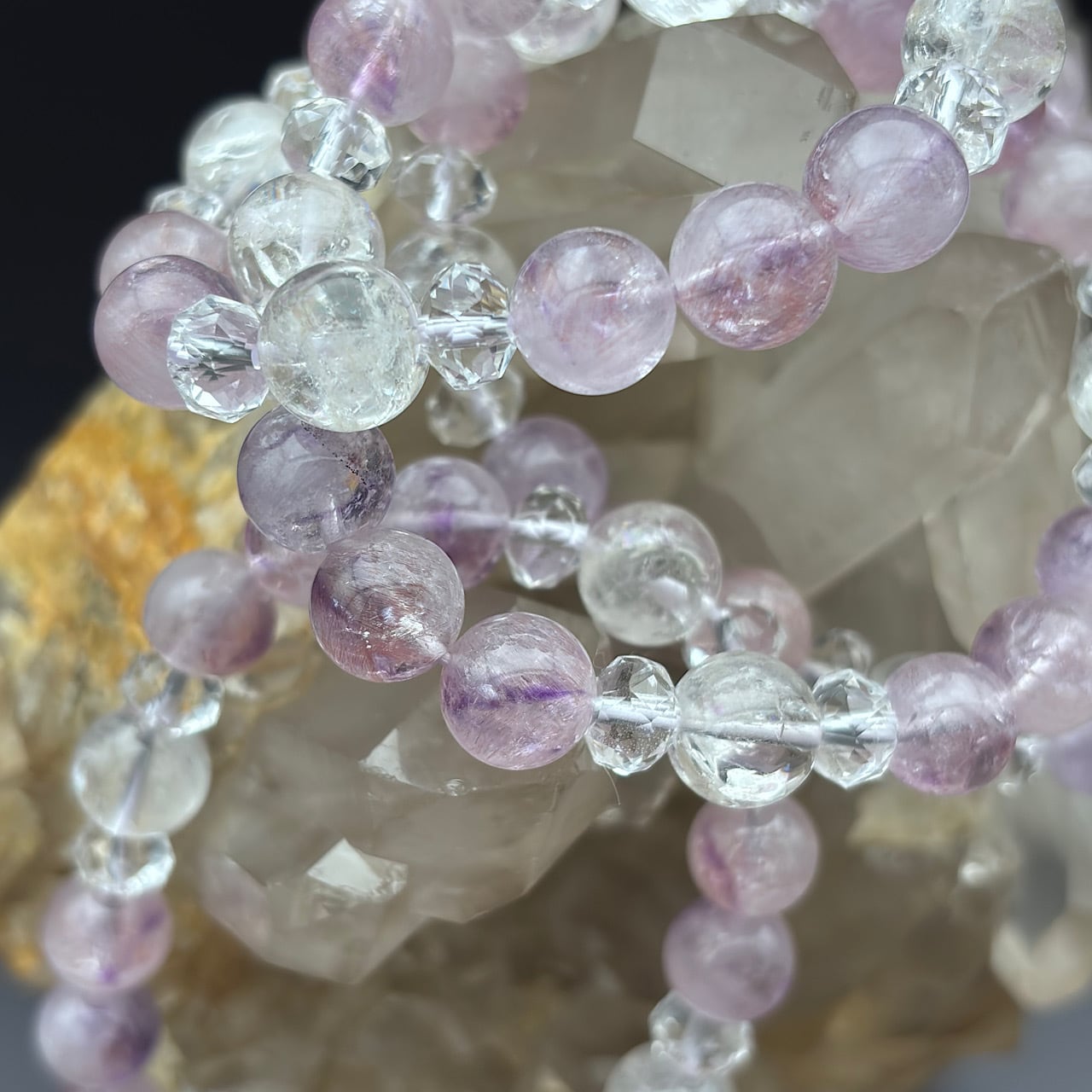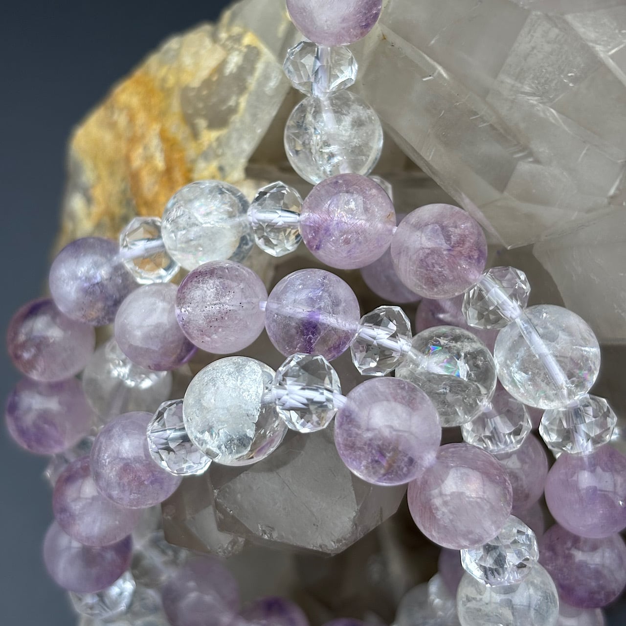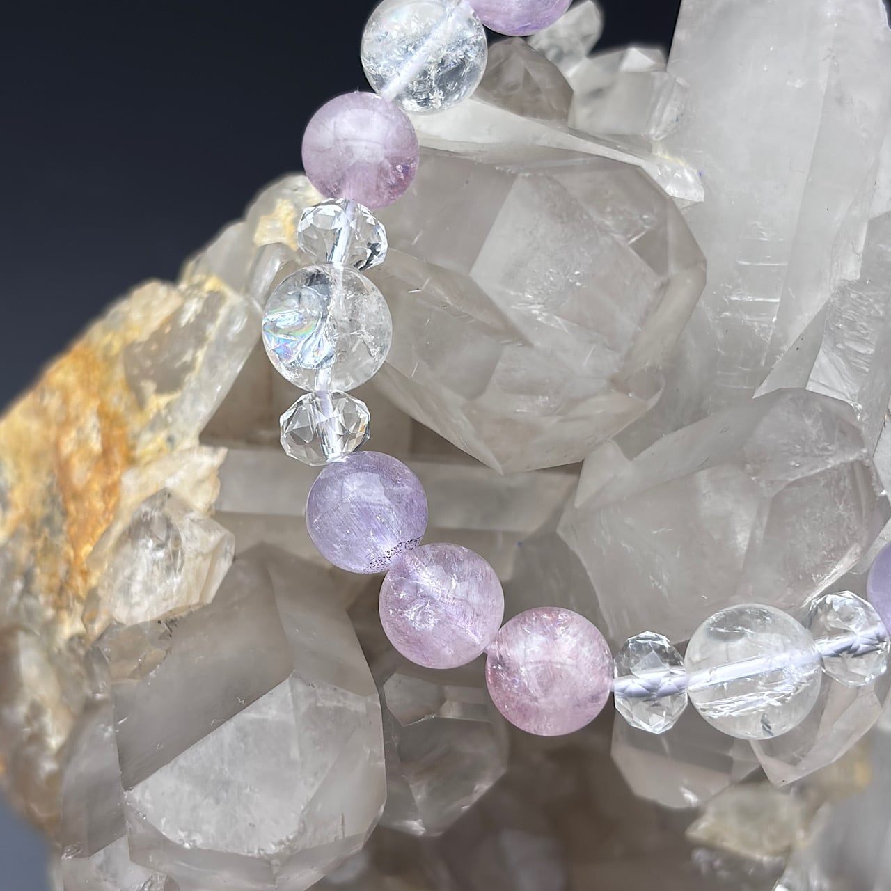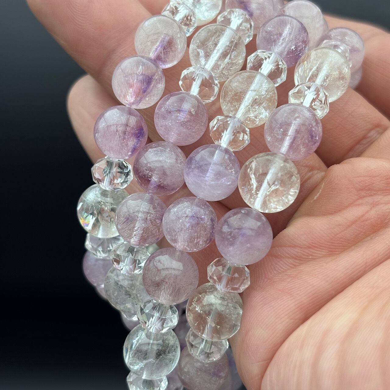 Reが厳選したピンクアメジストスーパーセブン、虹入りアイリスクォーツ、水晶を使用したブレスレットが新たに登場しました!