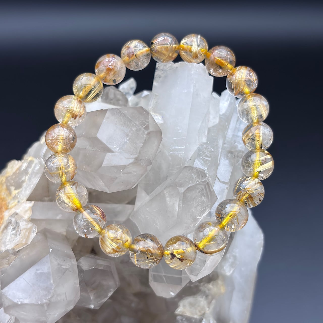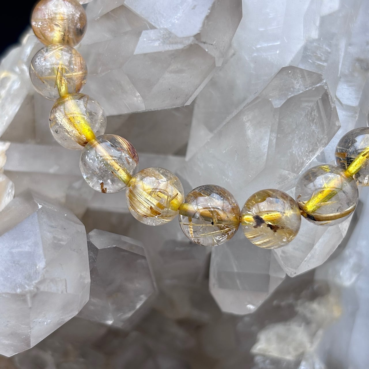 タイチンルチルは、その美しい針状の内包物と独特な輝きが特徴で、見る者に強い印象を与えます。このブレスレットは、シンプルでありながら特別な存在感があり、日常のファッションに華やかさを加えます☆