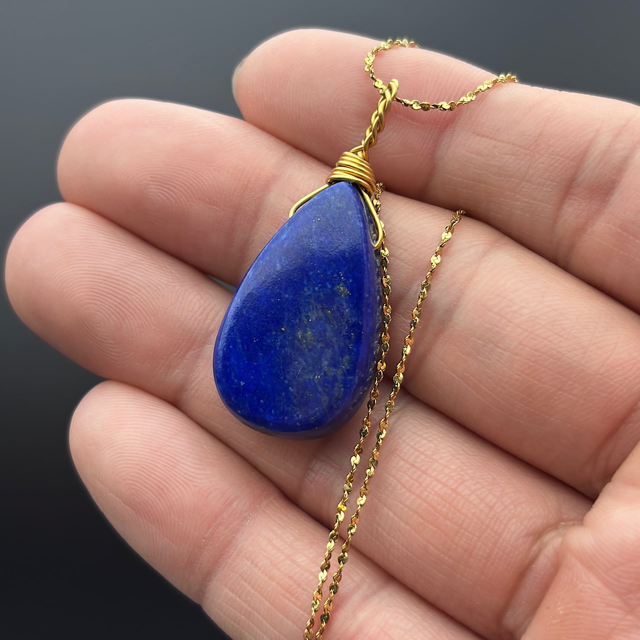 ラピスラズリは、その独特な深い青色と金色の粉が特徴で、身につけるたびに心が躍ります。このネックレスは、シンプルながらも特別な存在感を持ち、普段使いから特別なイベントまで幅広く活用できます☆
