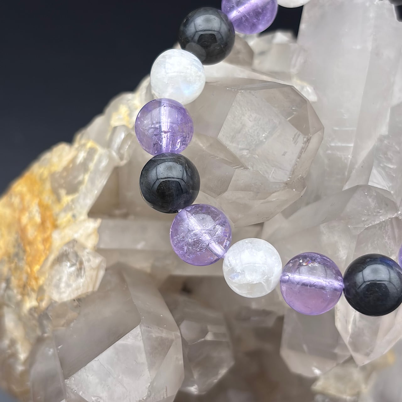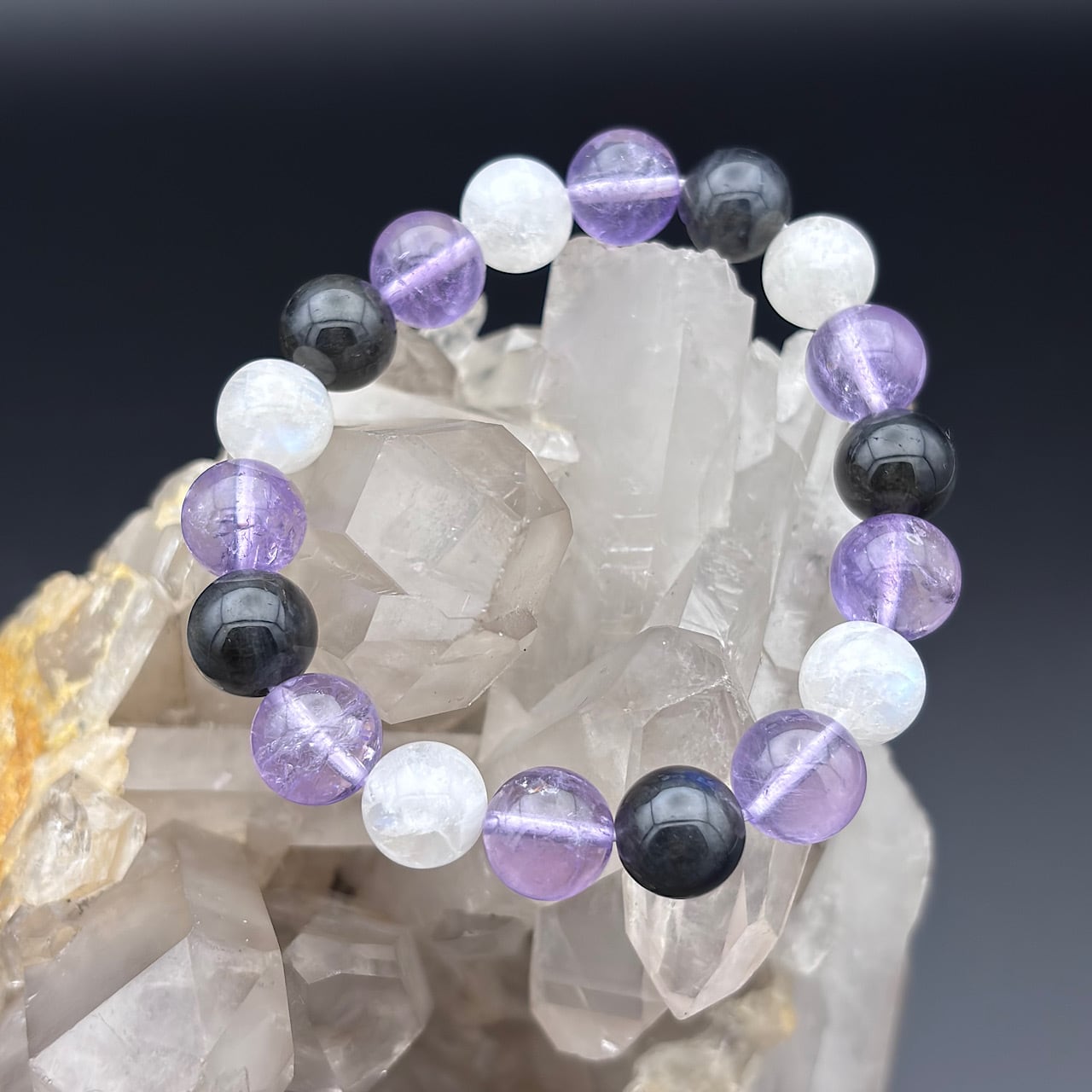 この魅力的なブラックラブラドライト、ラベンダーアメジスト、レインボームーンストーンを身につけて、あなたの日常にさらなるエネルギーとインスピレーションをもたらすことでしょう!