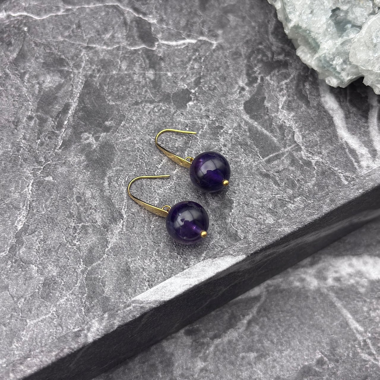 アメジストは、その美しい紫色が魅力的で、特に心を穏やかにする効果が知られています。このピアスは、シンプルながらも特別な存在感を持ち、普段使いはもちろん、特別なイベントでも大活躍できます☆