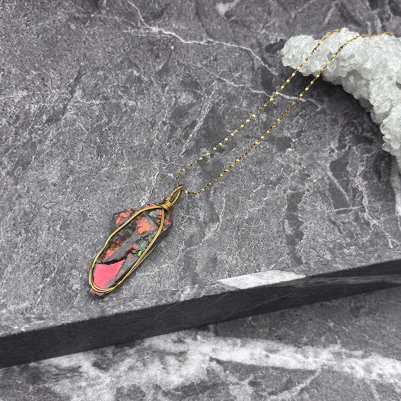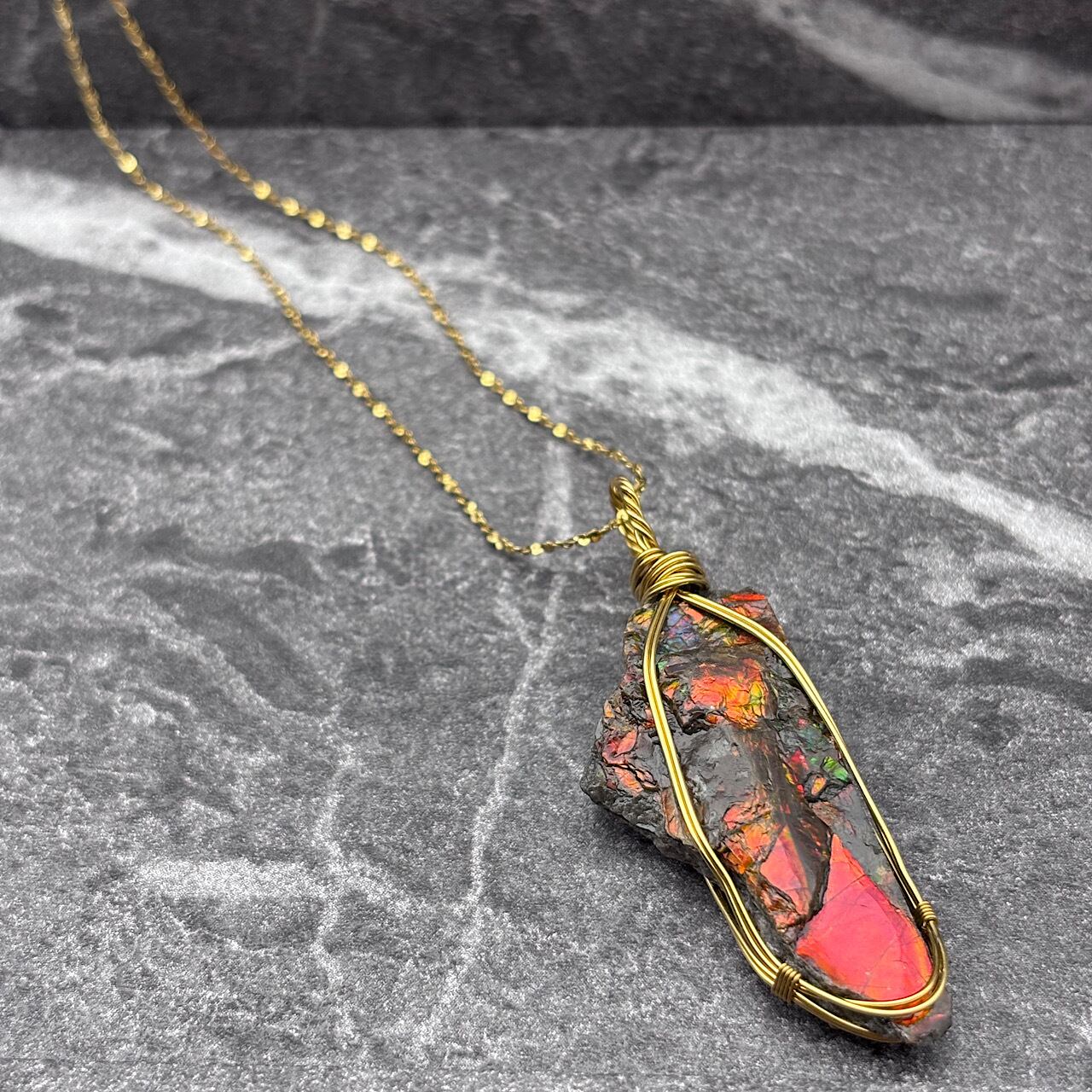 この魅力あふれるアンモライト原石ネックレスを身につけることで、あなたの心にさらなる幸運と繁栄が満ち溢れることでしょう!