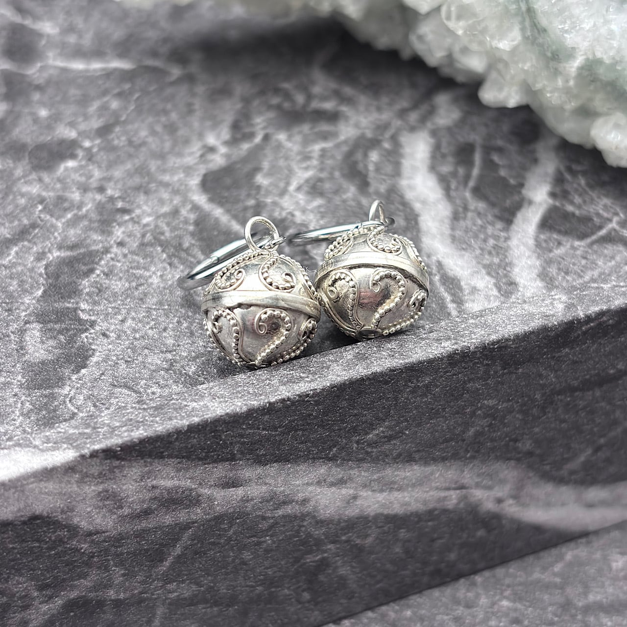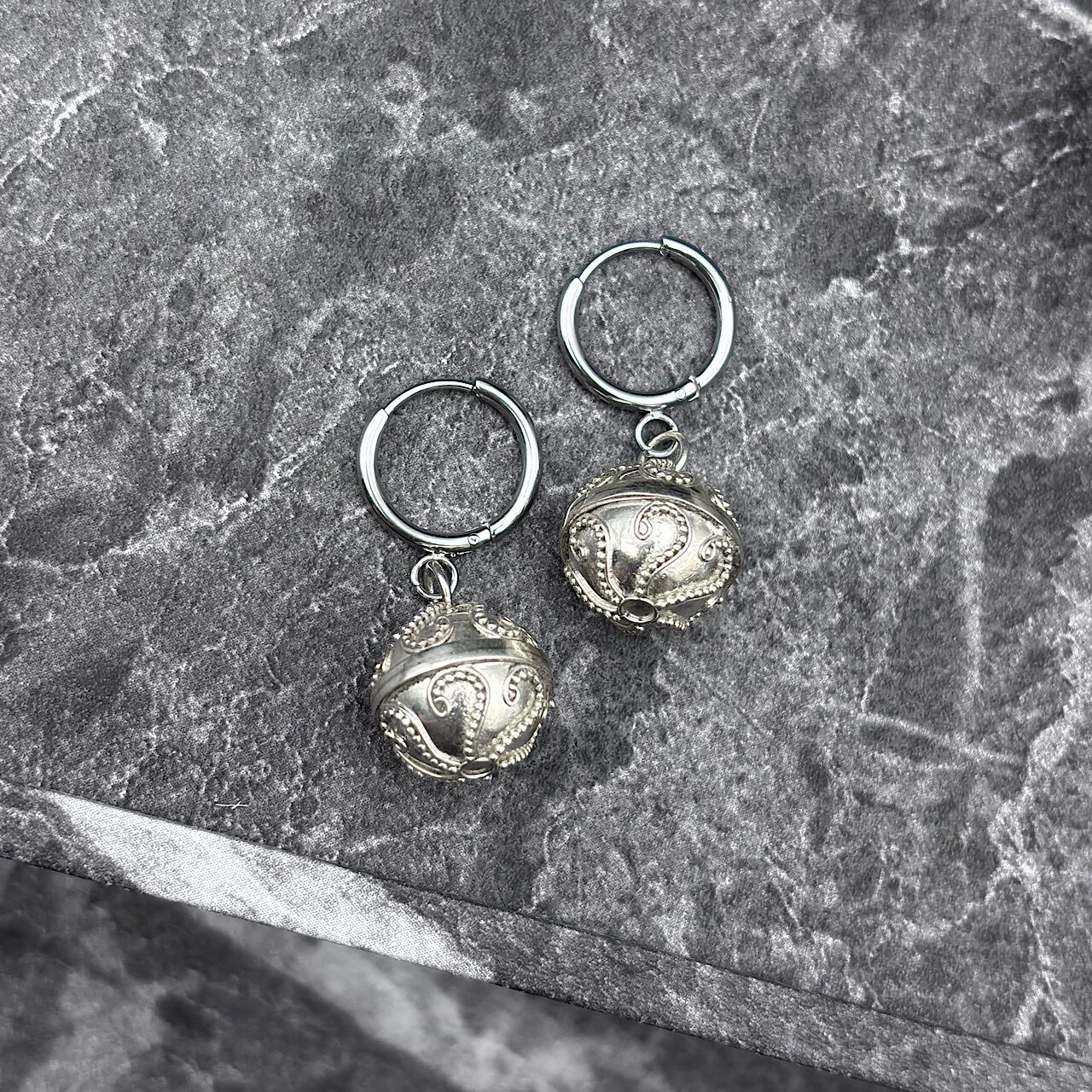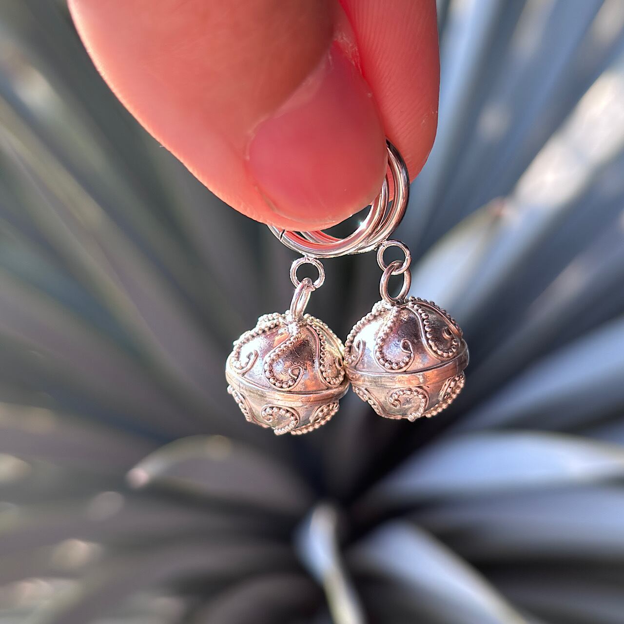 現地仕入れの特別なアイテム、バリシルバーガムランボールをR-stoneがピアスに☆この美しいピアスは、バリ島の伝統的なデザインを取り入れたもので、神秘的な音色を響かせる特長を持っています☆