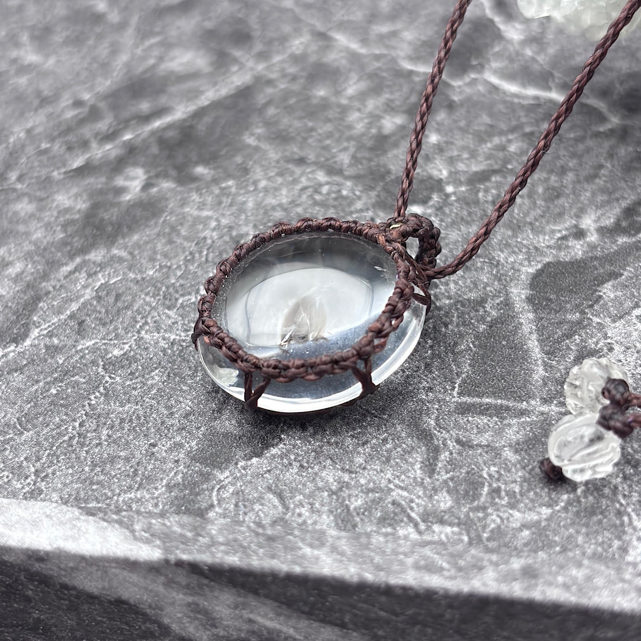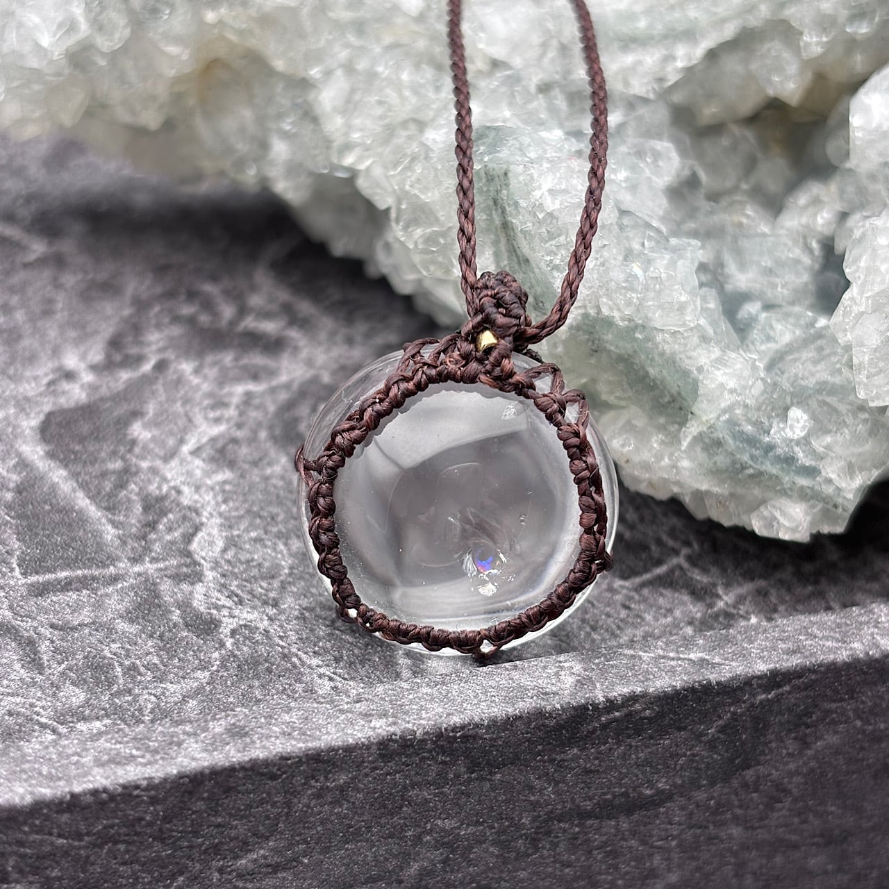 新たにアイリスクォーツを使用したマクラメネックレスが登場しました!この美しいネックレスは、虹色の輝きと独特の透明感を持ち、あなたのスタイルに華やかさをプラスします☆