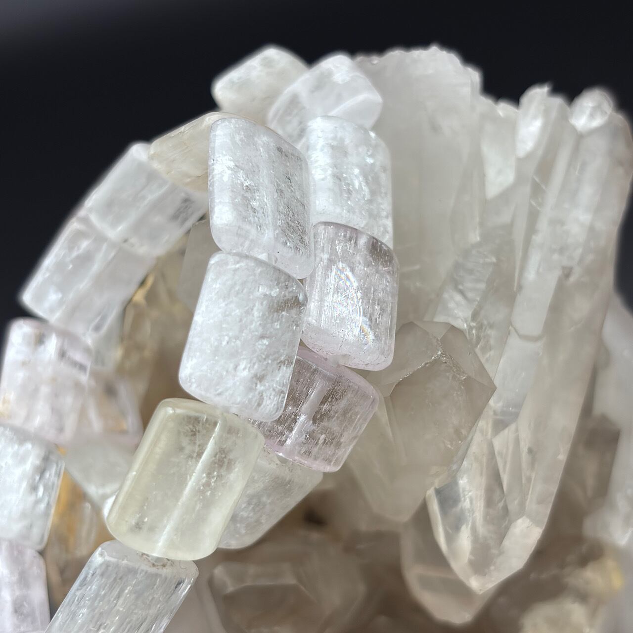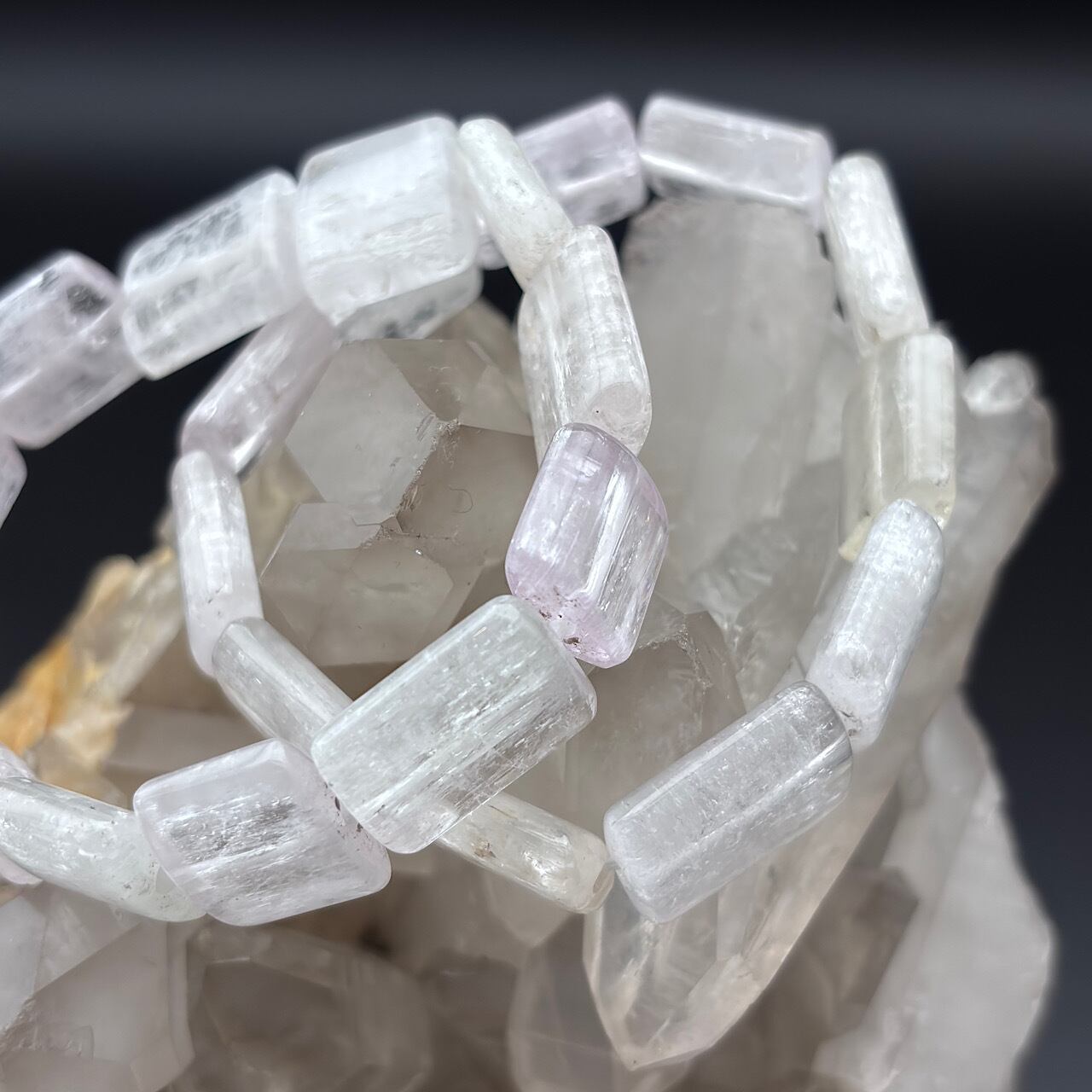 Reがバリから直仕入れしたクンツァイトを使用したペタンコ型のブレスレットが新登場しました!この美しいブレスレットは、独特のやさしい色合いと輝きを持ち、あなたのスタイルに気品を添えます☆