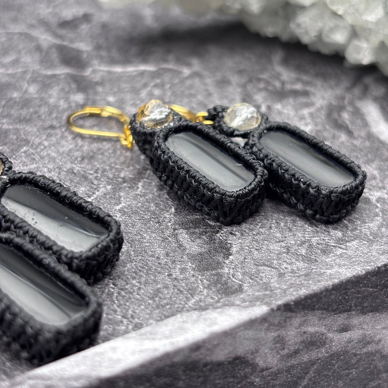 ⭐︎金運覚醒マクラメ編みピアス⭐︎ブラックスピネル、シトリン