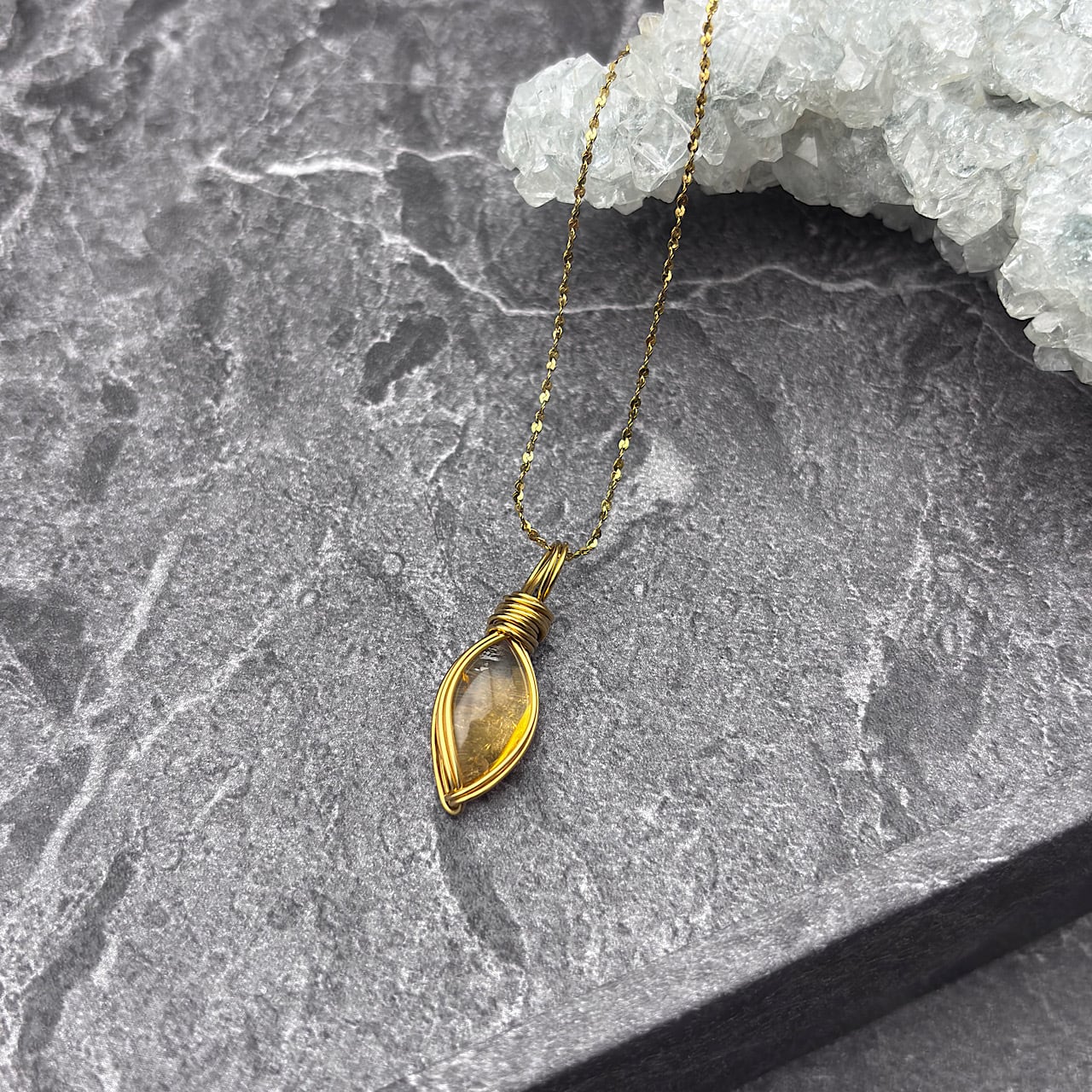 シトリンワイヤーラップネックレスの美しさと活力に満ちたエネルギーは、あなたの心にも響くことでしょう。この特別なネックレスを身に着けて、ポジティブで豊かな日々を実感していただければと思います!