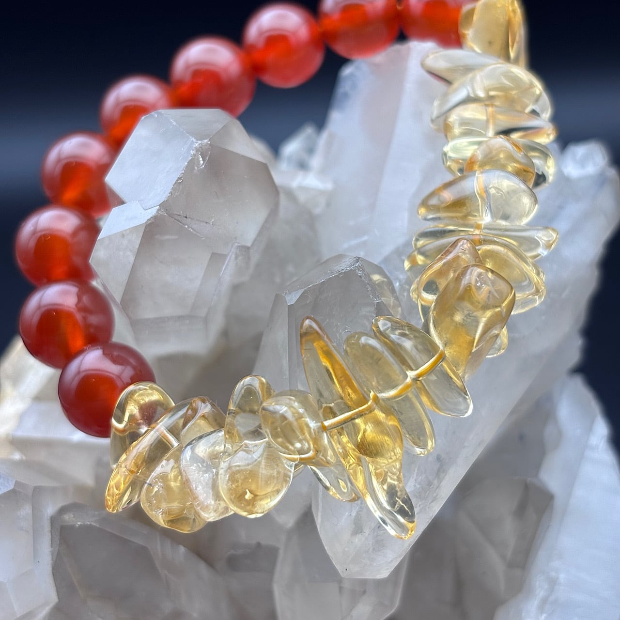 火のエネルギーを持つ☆カーネリアン×シトリンブレスレットの美しさとその力は、あなたの日常に新たな刺激を与えることでしょう。この特別なブレスレットをぜひお手元に置いて、情熱的な瞬間と特別な体験を楽しんでいただければと思います!