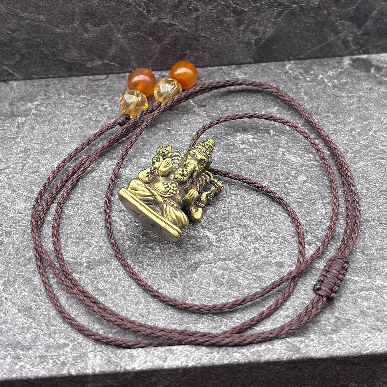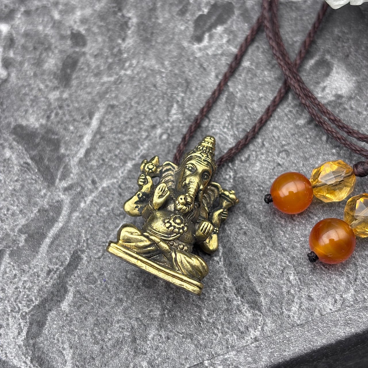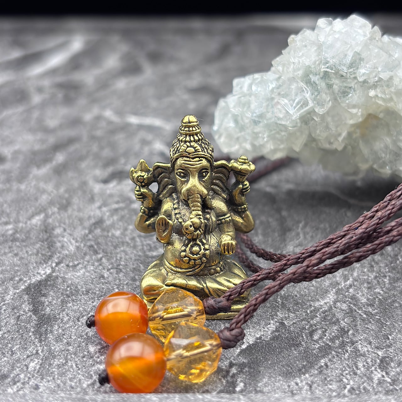 ガネーシャは、障害を取り除く神として知られており、財運や成功を引き寄せる存在として親しまれています。このネックレスを身につけることで、あなたの道がより明るく照らされ、特別なエネルギーに包まれることでしょう!
