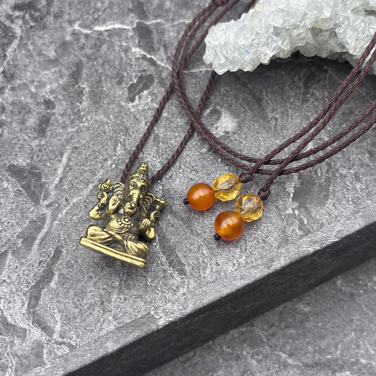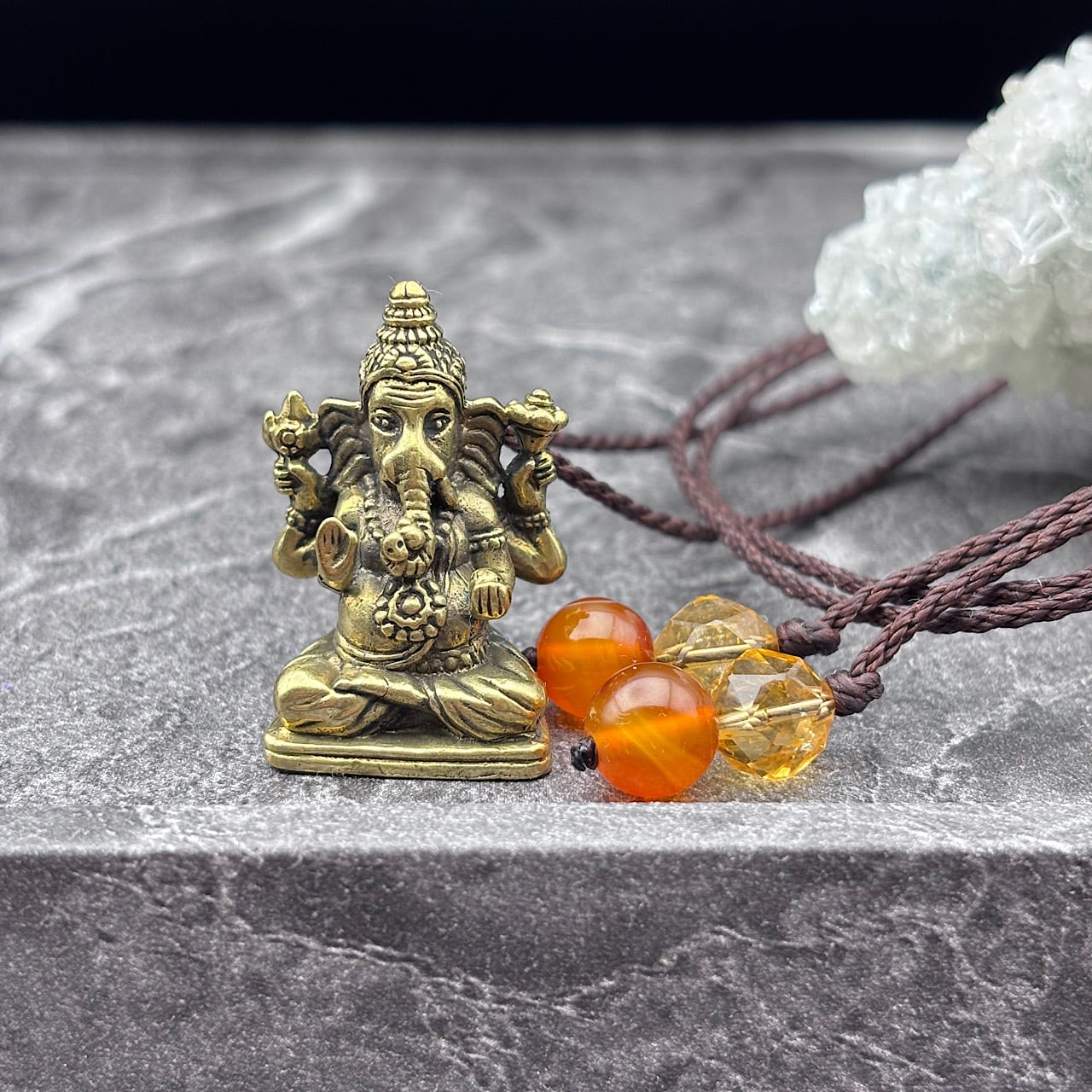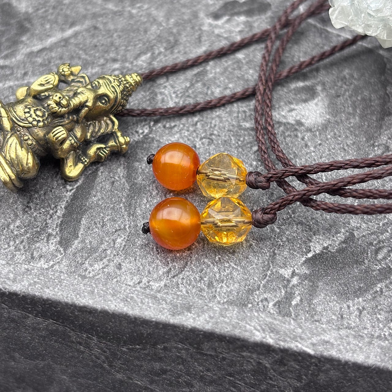 ガネーシャは、障害を取り除く神として知られており、財運や成功を引き寄せる存在として親しまれています。このネックレスを身につけることで、あなたの道がより明るく照らされ、特別なエネルギーに包まれることでしょう!